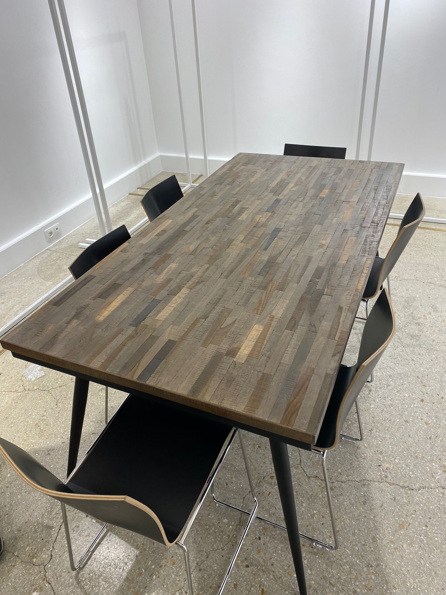 Brandolino Table Nordic style . It’s hard not to fall for the teak planks that cover the top of table. Current and very elegant, this 180x90cm rectangular table in wood and metal displays very beautiful proportions and an elegance that will fit perfectly into all business meetings , booths or events.