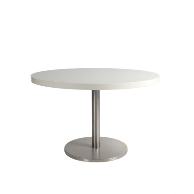 with round central foot in brushed stainless steel |