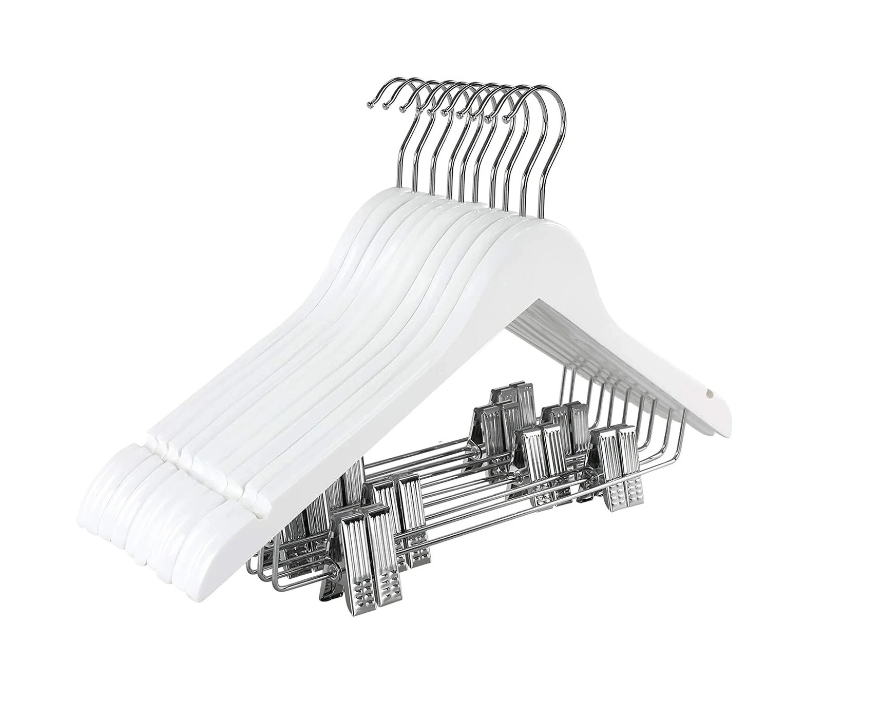 Wood Hangers With Clips White – Showroom